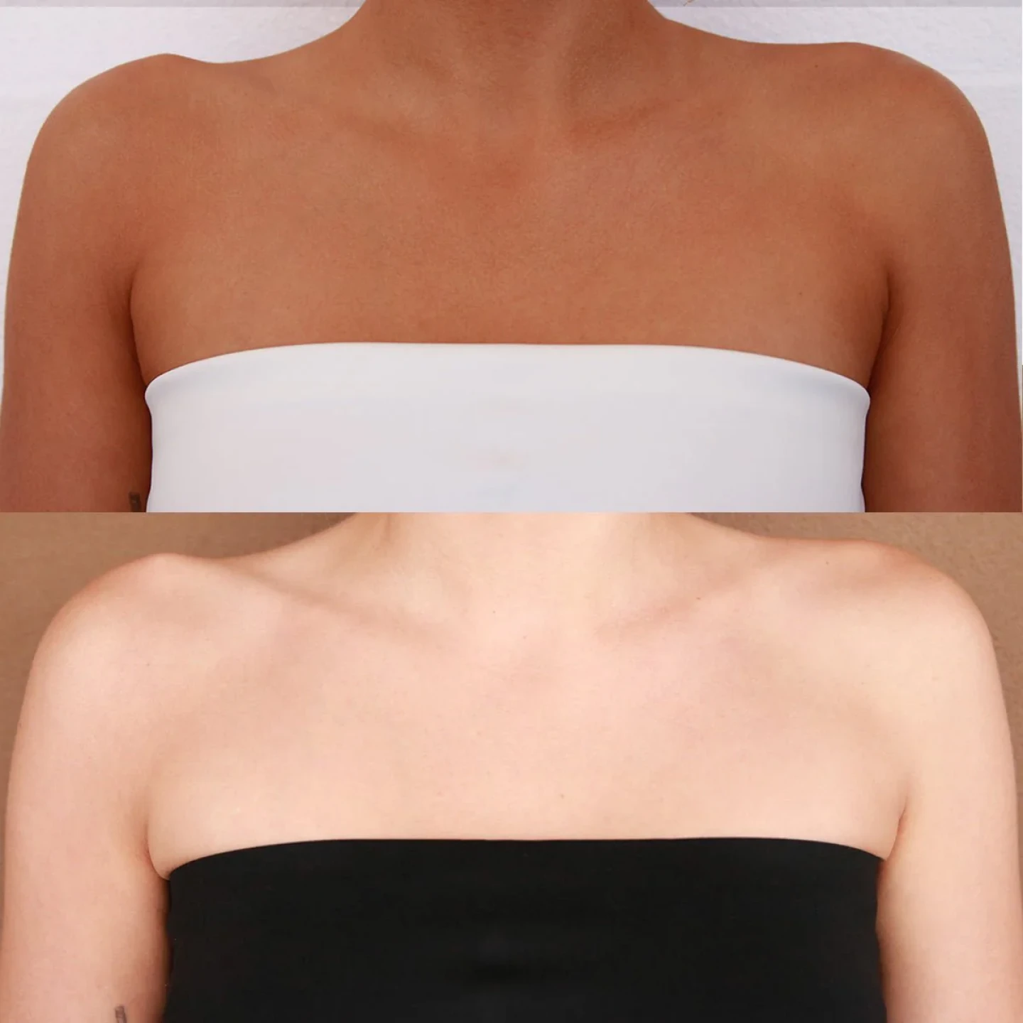 Our organic spray tan offers two customisable shades for the perfect, flattering finish. Blended with calming chamomile, antioxidant cacao and hydrating aloe vera, it cocoons the skin in nourishment as it develops.